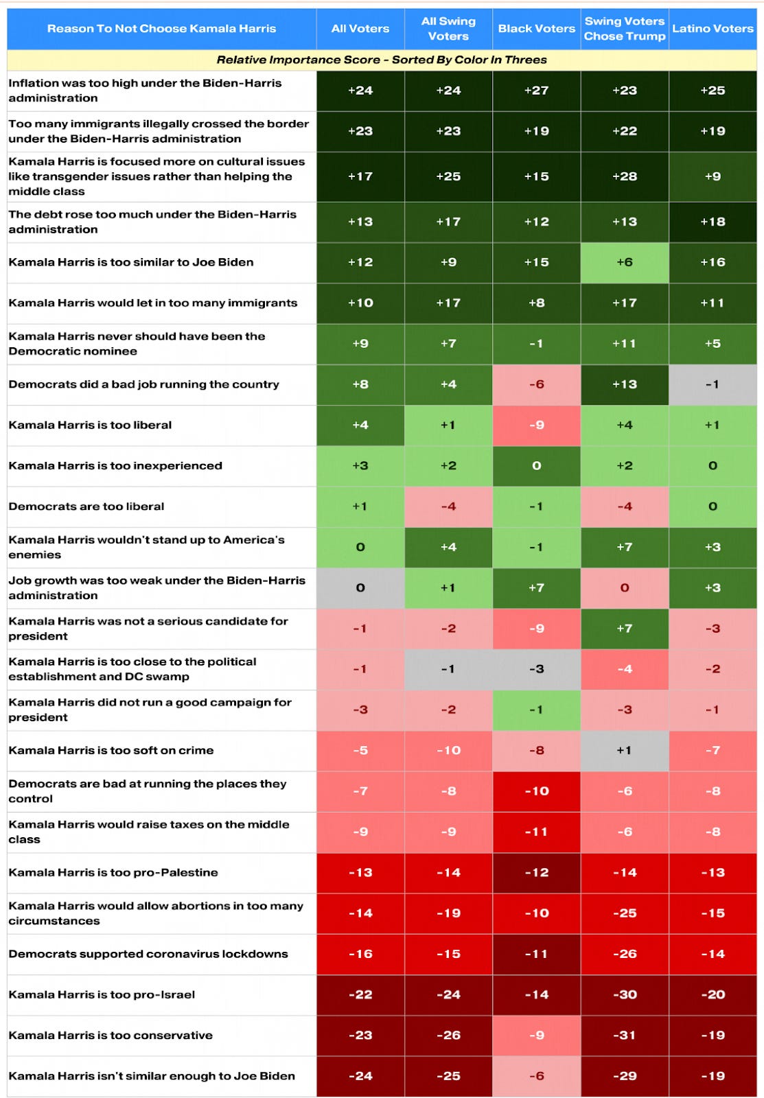 The Blueprint Poll taken immediately after the election vividly shows that Kamala Harris was viewed as too similar to Biden and too liberal. The lowest-ranked concerns were that she wasn’t enough like Biden and that she was too conservative. Voters’ reality simply does not match progressives’ cope.